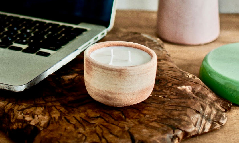 נר מעוצב בכלי חרס חברוני עבודת יד, עשוי שעווה טבעית ללא כימיקלים ופראפין. הכלי ניתן לשימוש חוזר כעציץ או ככלי דקורטיבי לבית.
