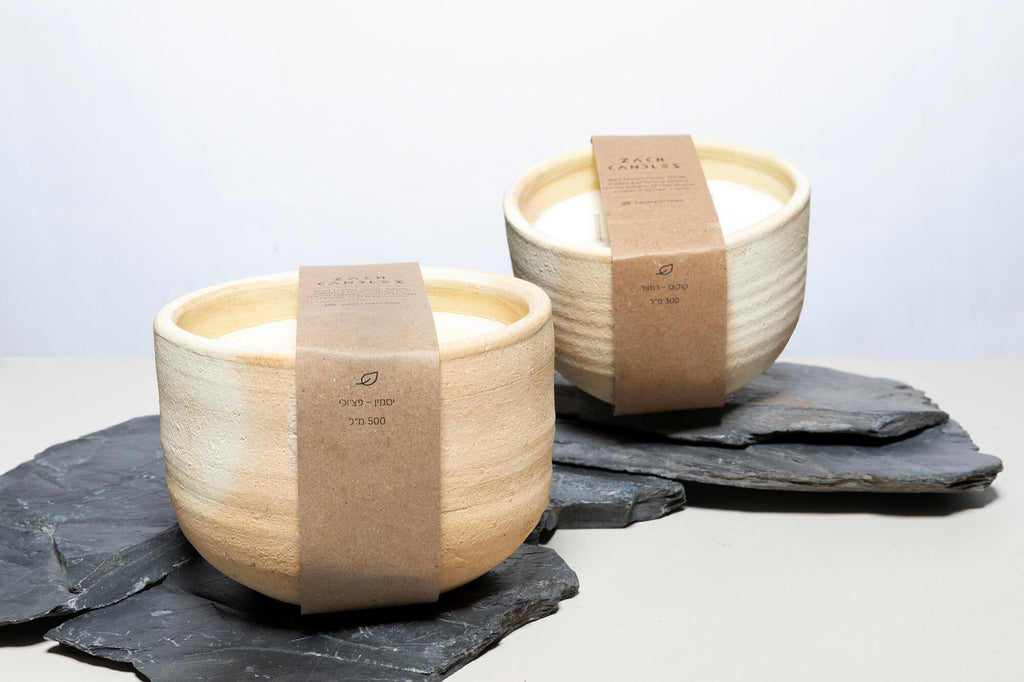 נרות עשויים שעווה טבעית ושמנים, כלים עבודת יד חברונית.